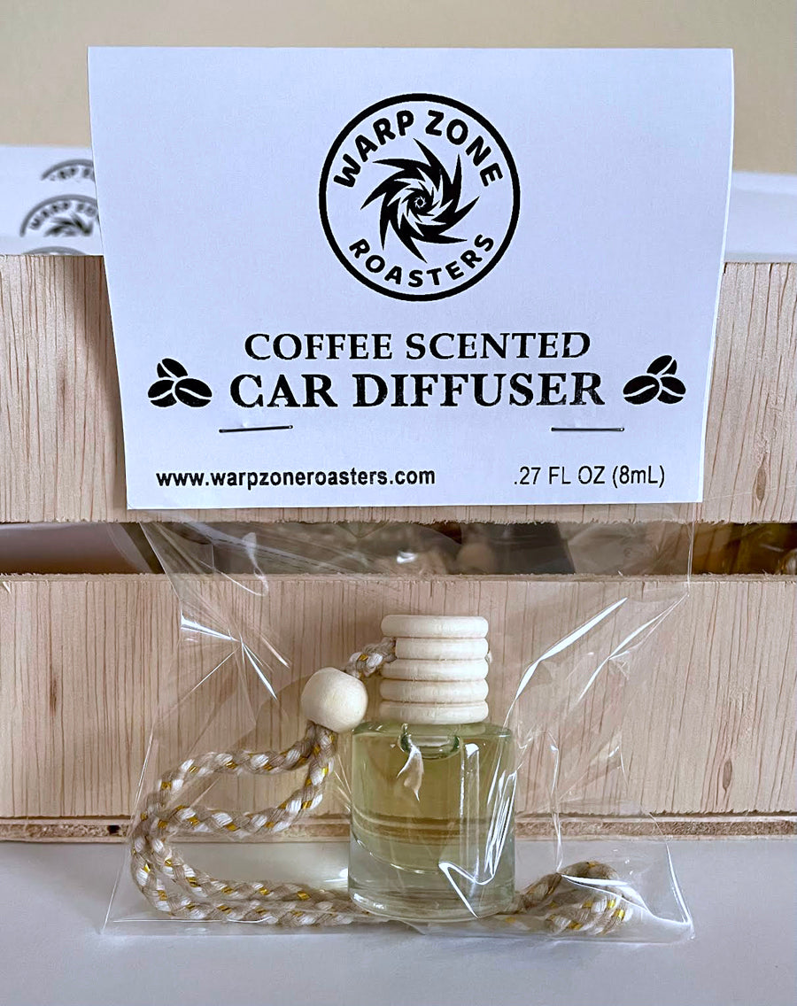 Introducing the Warp Zone Roasters' Coffee Scented Car Diffuser – a captivating blend of aromatic excellence and driving pleasure. Elevate your daily commute with the rich, stimluating aroma of freshly brewed coffee, carefully crafted to infuse your car with the essence of a cozy café. Unwind in the warm embrace of this delightful fragrance, transforming your car into a sanctuary of sensory indulgence, only from Warp Zone Roasters.