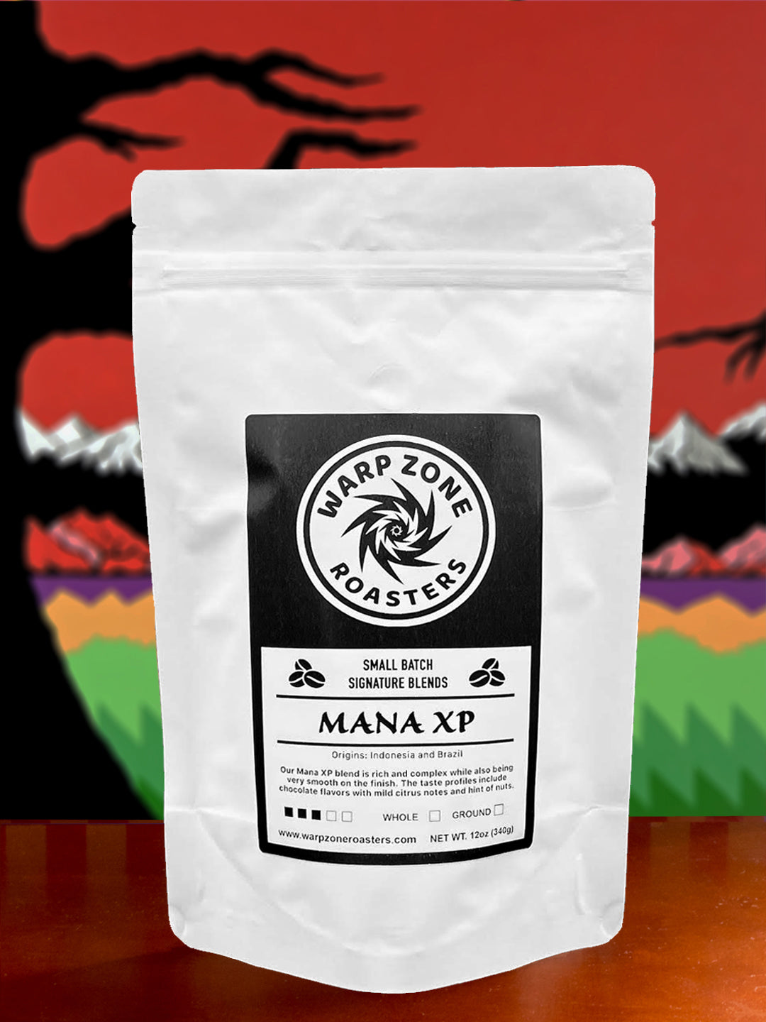 Our Mana XP Blend is a delicious medium roast that's rich and complex while also being very smooth on the finish. This blend has taste profiles that include chocolate flavors with a buttery background, as well as a hint of spice and nuts.