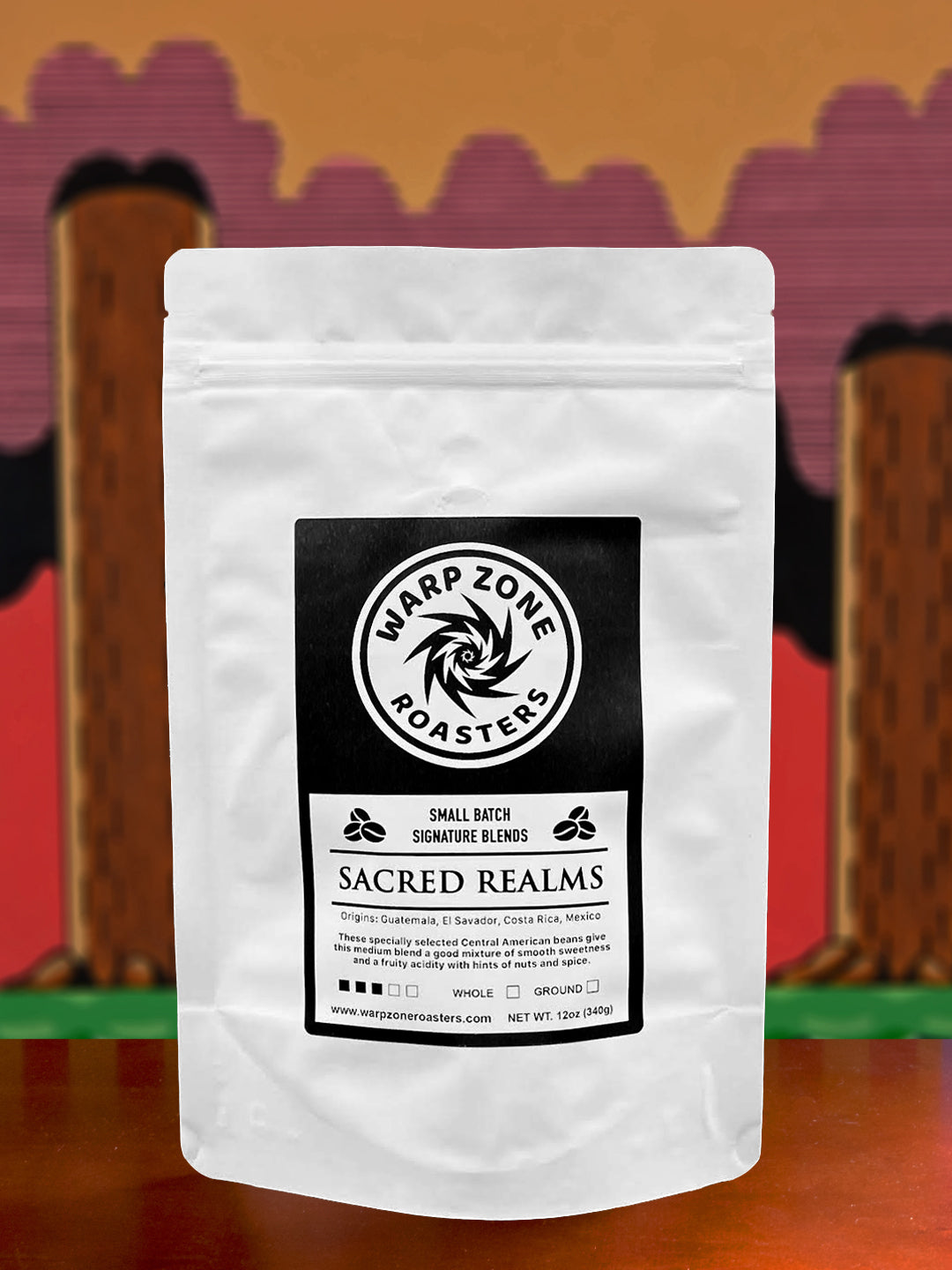 Our Sacred Realms Blend sources beans from Guatemala, El Salvador, Costa Rica and Mexico. These specially selected Central American coffee beans give this medium roast a nice balance and smooth sweetness with tasting notes of fruit, nuts and a hint of spice.