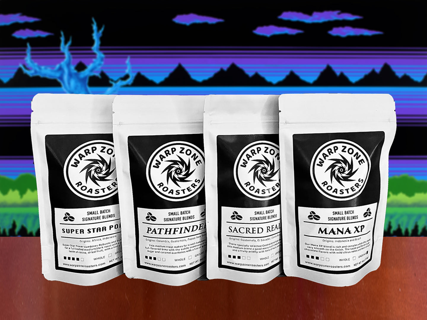 Our Sampler Pack includes four, 4oz. (16oz. total) sample bags of each of the following blends (gift box not included in online sales):