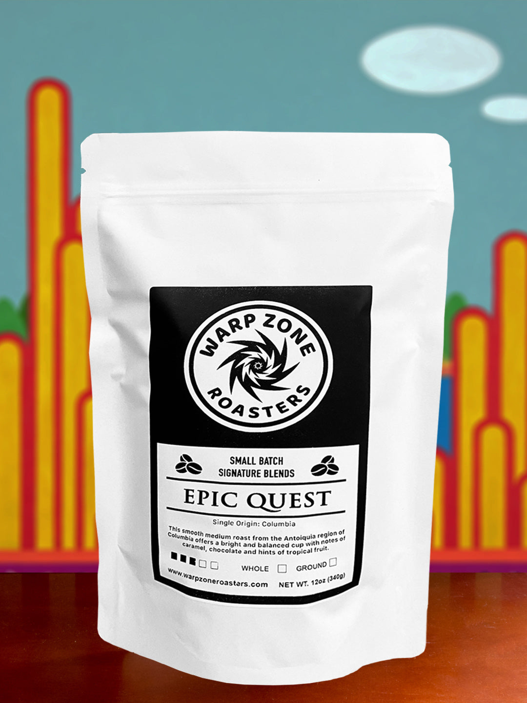 Epic Quest is a single origin specialty coffee from the Antoiquia region of Colombia. This smooth medium roast offers a bright and balanced cup with notes of caramel, chocolate, with hints of tropical fruit.